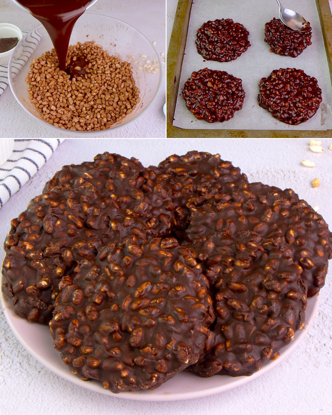 Enkle kjeks uten steking som du kan lage på forhånd (mørk sjokolade og puffet ris)