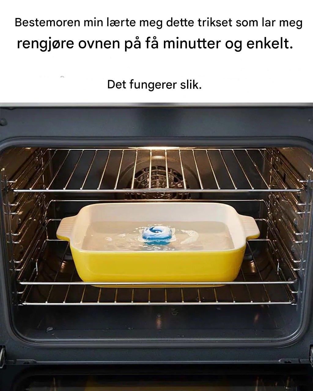 Det er bestemors hemmelighet, som ligger i en oppvaskmaskinkapsel! Ja, den du legger i oppvaskbrettet. Hvorfor fungerer det? Fordi disse små kapslene inneholder svært effektive avfettingsmidler som er utviklet for å fjerne selv de mest gjenstridige restene. Og sammen med dampen mykgjør den forsiktig hele innsiden av ovnen. Utrolig, ikke sant?