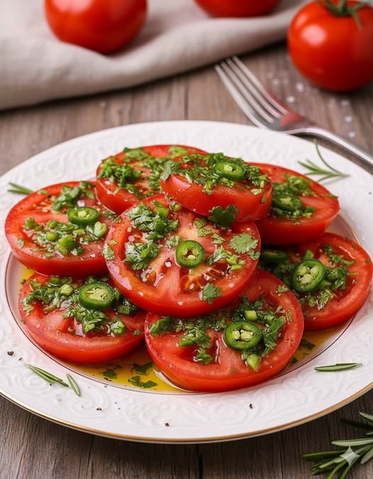 Leter du etter en livlig og smakfull salat som er både enkel og uforglemmelig? Magisk tomatsalat er svaret! Denne retten er fullpakket med saftige tomater, aromatiske urter og en syrlig søt dressing, og er en feiring av friske, sterke smaker. Perfekt for enhver anledning – enten det er en lett lunsj, en tilbehørsrett til grillretter eller en fantastisk potluck-tilbehørsrett – denne salaten vil få alle til å hige etter mer.