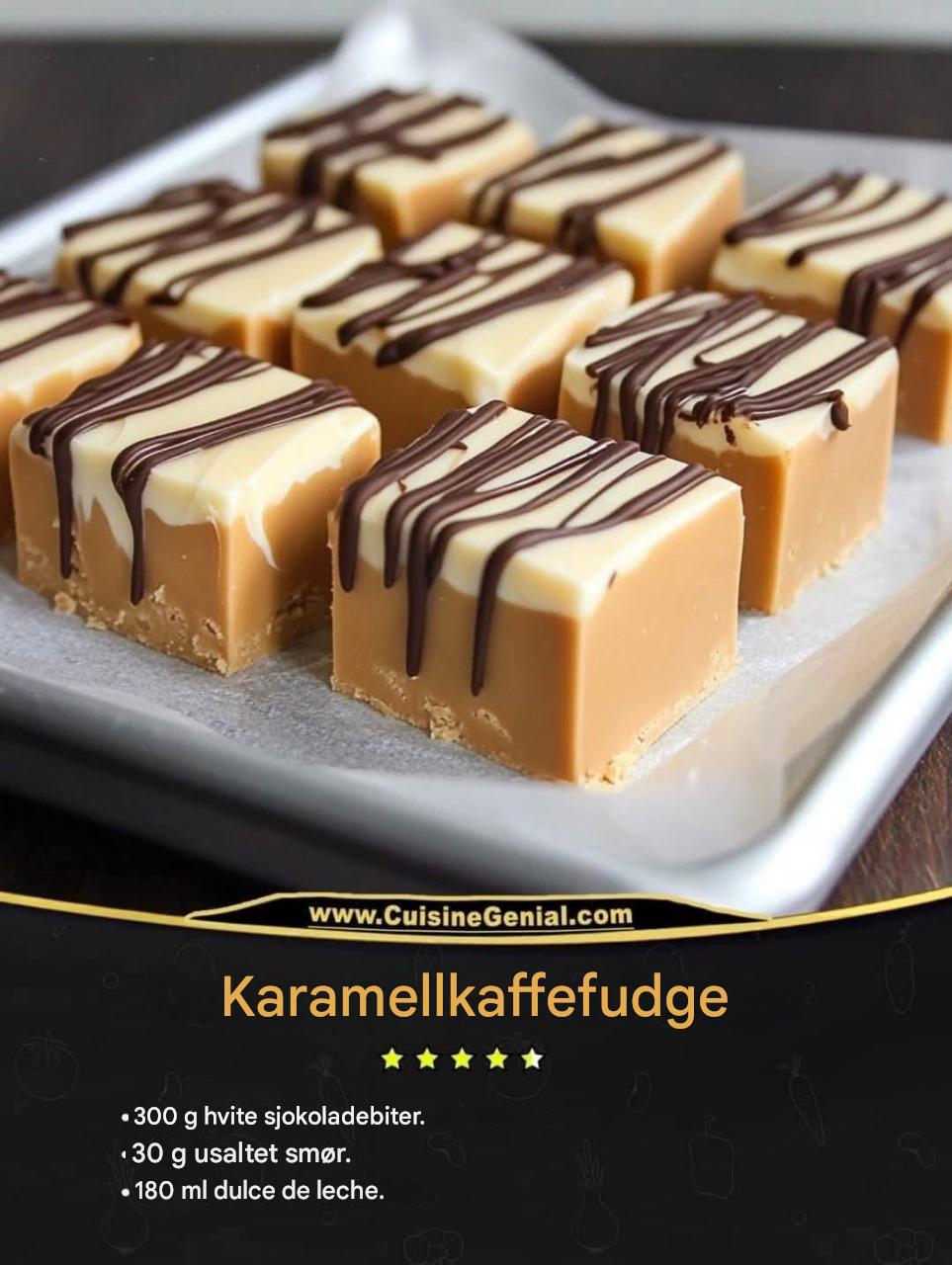 Karamellkaffefudge Kaffefudge En deilig blanding av karamell- og kaffesmaker i en glatt fudge. Ingredienser: • 300 g hvite sjokoladebiter • 30 g usaltet smør • 180 ml dulce de leche • 120 g marshmallowkrem • 2 ss pulverkaffe • 5 ml varmt vann • 120 ml søtet kondensert melk • 400 g hvite sjokoladebiter • … Read more