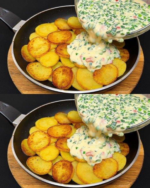 Bestemoren min lærte meg denne retten: 2 poteter og ost. Ingredienser: 2 poteter Litt vegetabilsk olje Salt etter smak Pepper 4 egg Cherrytomater Vårløk Sort pepper 200 g crème fraîche 80 g mozzarellaost Persille Tilberedning: fortsetter på neste side