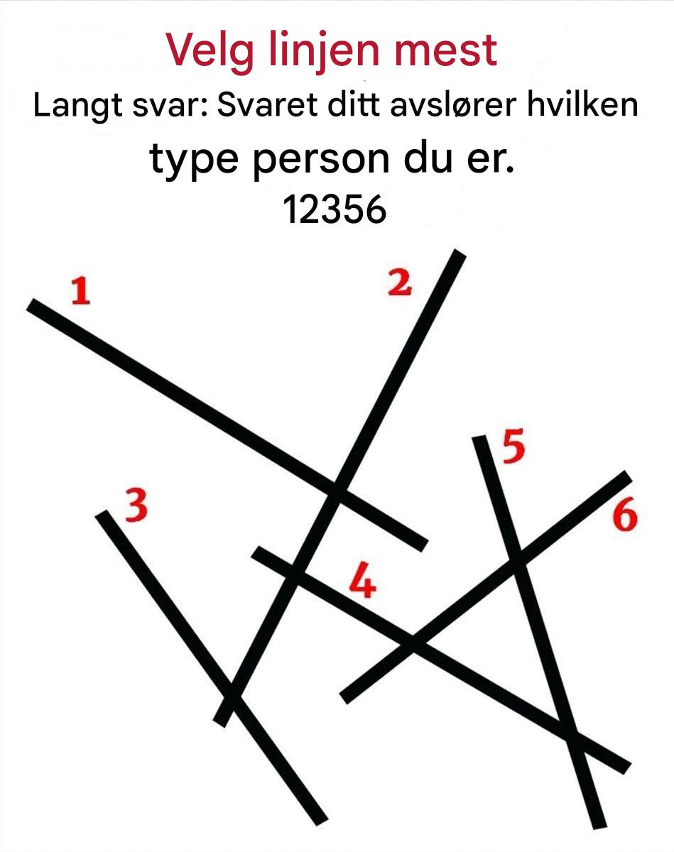 Ved første øyekast er det et enkelt, harmløst spill: seks svarte linjer, nummerert 1 til 6, tegnet side om side. Ditt oppdrag? Merk av den som virker lengst. Enkelt, ikke sant? Og likevel … bak dette tilsynelatende uskyldige valget ligger en fascinerende test av din oppfatning og din tilnærming til livet. Så, klar til å oppdage hva intuisjonen din avslører om deg?